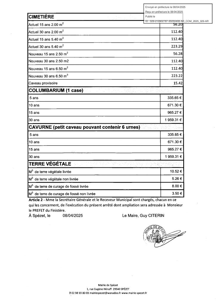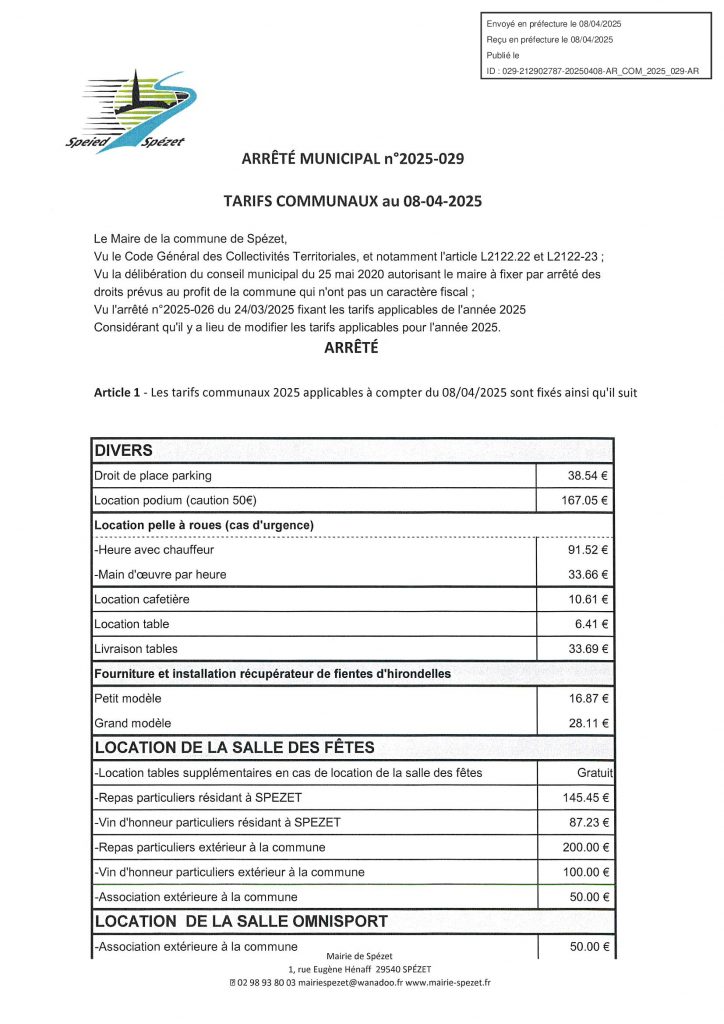 Tarif municipaux